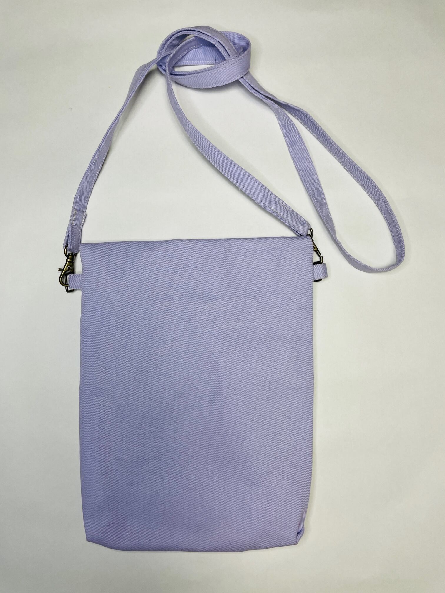 ワンポイントにブルネイ機械織生地を使用した縦型ポシェットです。オレンジの織柄が銀糸の織柄に映えてパープルのポシェットにとても合っています。内ポケットも付いておりショルダー紐は取り外しができるので、バッグインバッグとしてもご使用できます。特にご旅行等お出かけの際には大変便利なアイテムです。